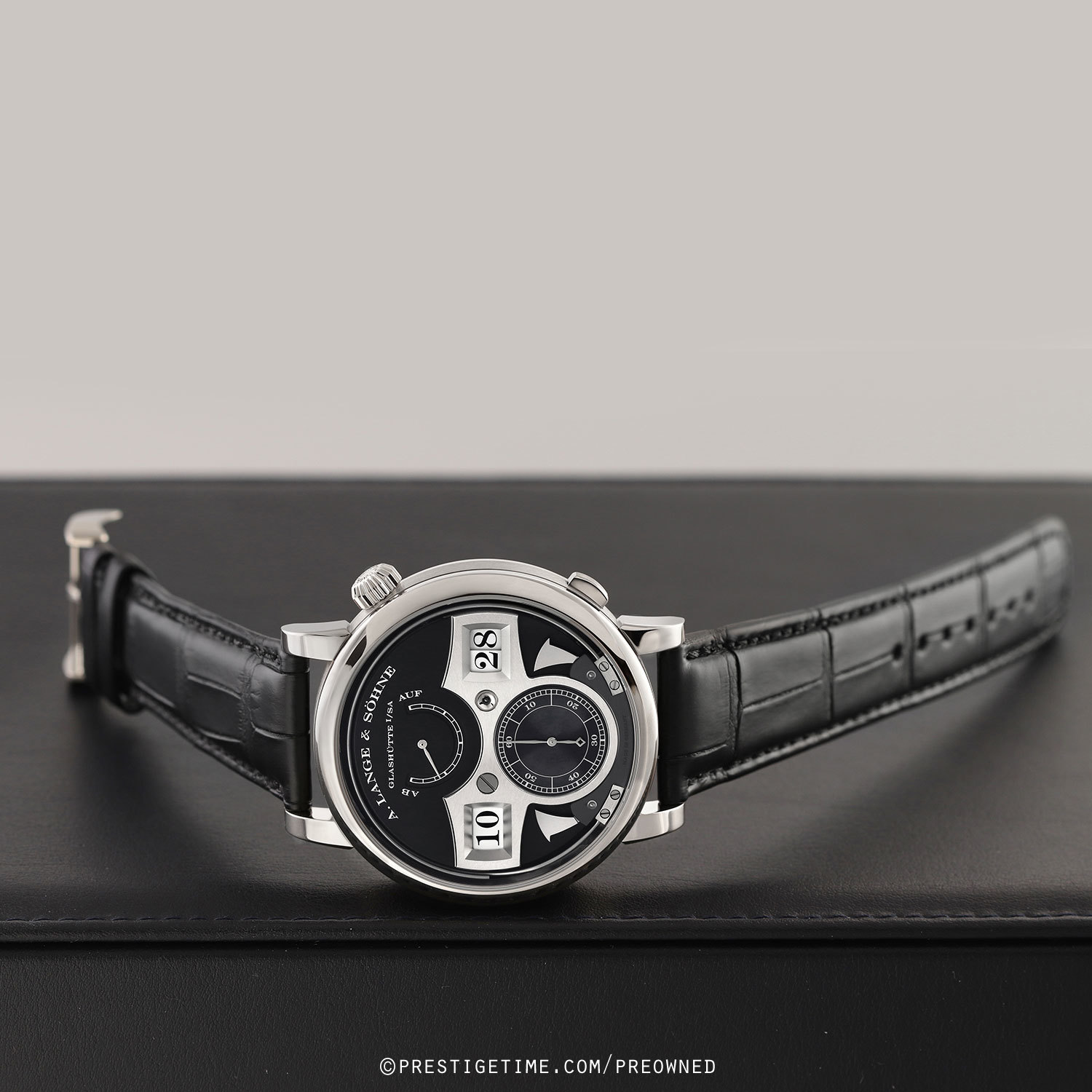 Strap: Fitted a brand new A. Lange & Sohne original black alligator leather strap with a solid 18kt white gold tang buckle. The strap is brand new, in unworn condition with its full wear lifespan remaining.