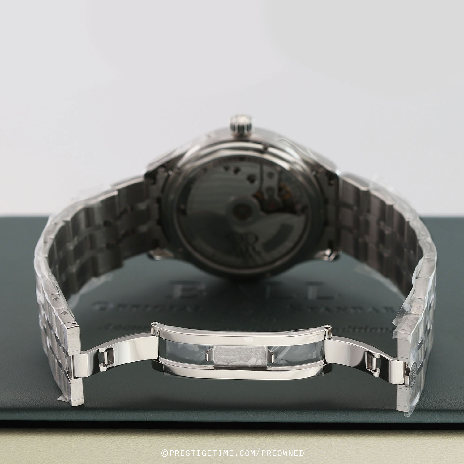 Condition: This watch is in unworn condition, with most of the original factory protective stickers intact. Delivered in its original box with all papers (warranty card).