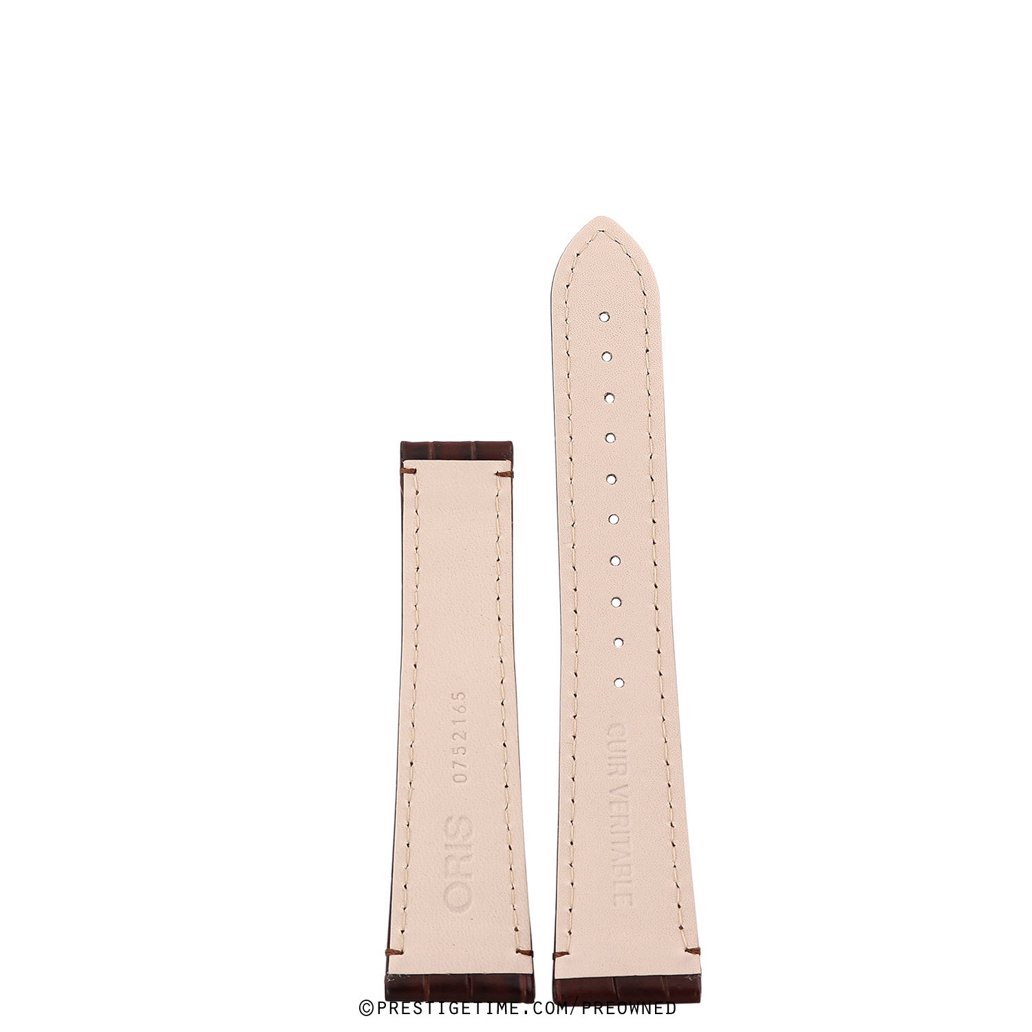 Genuine Oris brown stitched alligator strap for deployant buckle.